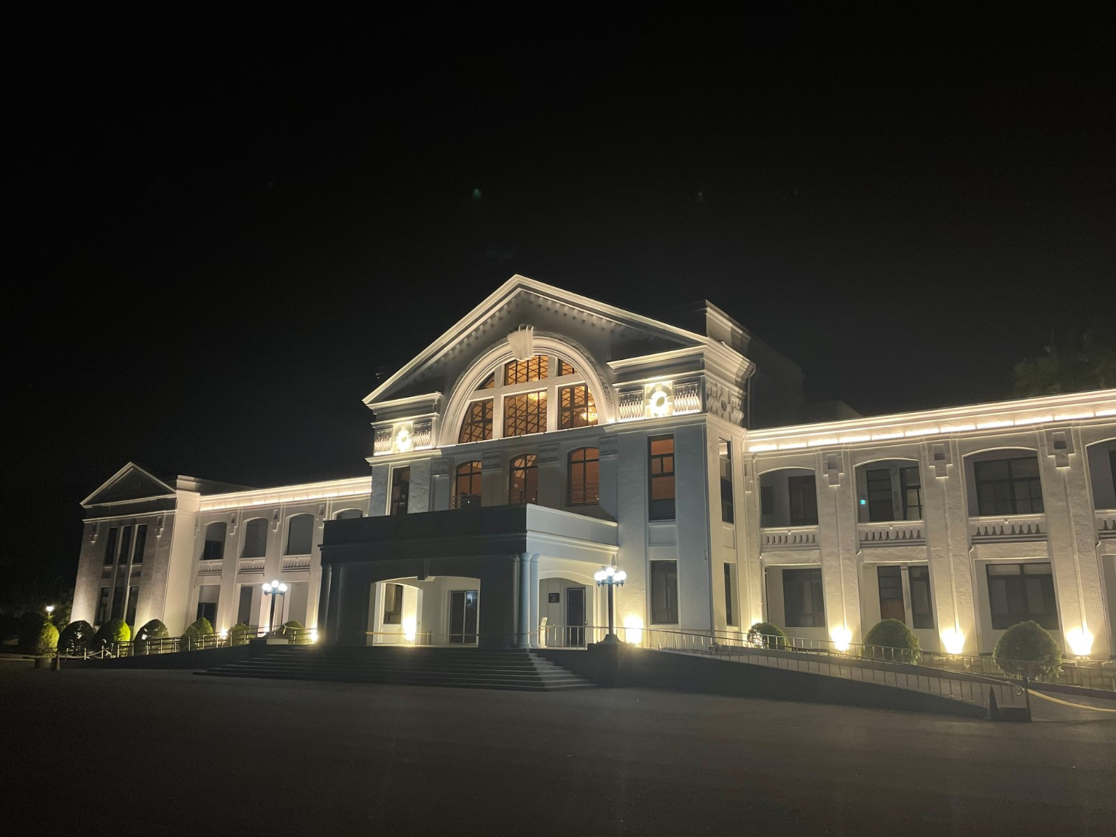 為推動區域活化並落實文化資產保存,國家發展委員會今(21)日表示,位於南投中興新村、有「小白宮」之稱的中興會堂,歷經6年規劃與修復、投入逾新台幣1億元,已於近日完工,除提升建物耐震韌性,也透過夜間光環境設計,讓歷史建築以嶄新風貌重新對外開放。