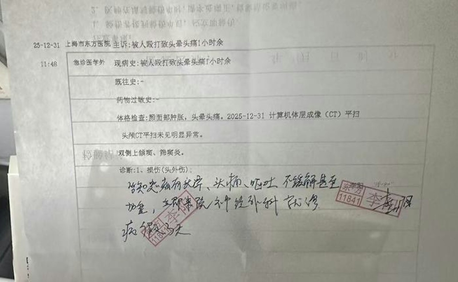 唐姓男子的驗傷單。翻攝自紅星新聞