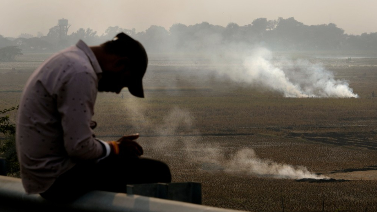 2024年11月17日,印度邦德克漢德地區的農民收成後,進行傳統的火耕。美聯社