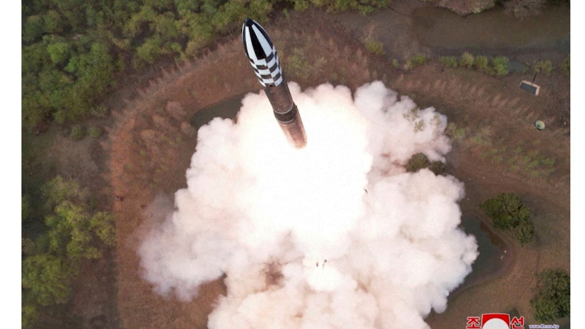 圖為北韓新型固體燃料洲際彈道飛彈「火星-18」(Hwasong-18)。路透社資料照片