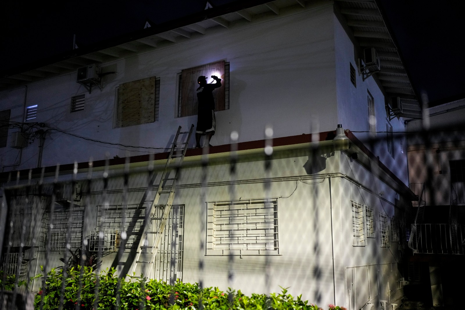 2025年10月25日,牙買加民眾在5級颶風「美莉莎」來襲前,加緊修繕加固房屋。美聯社