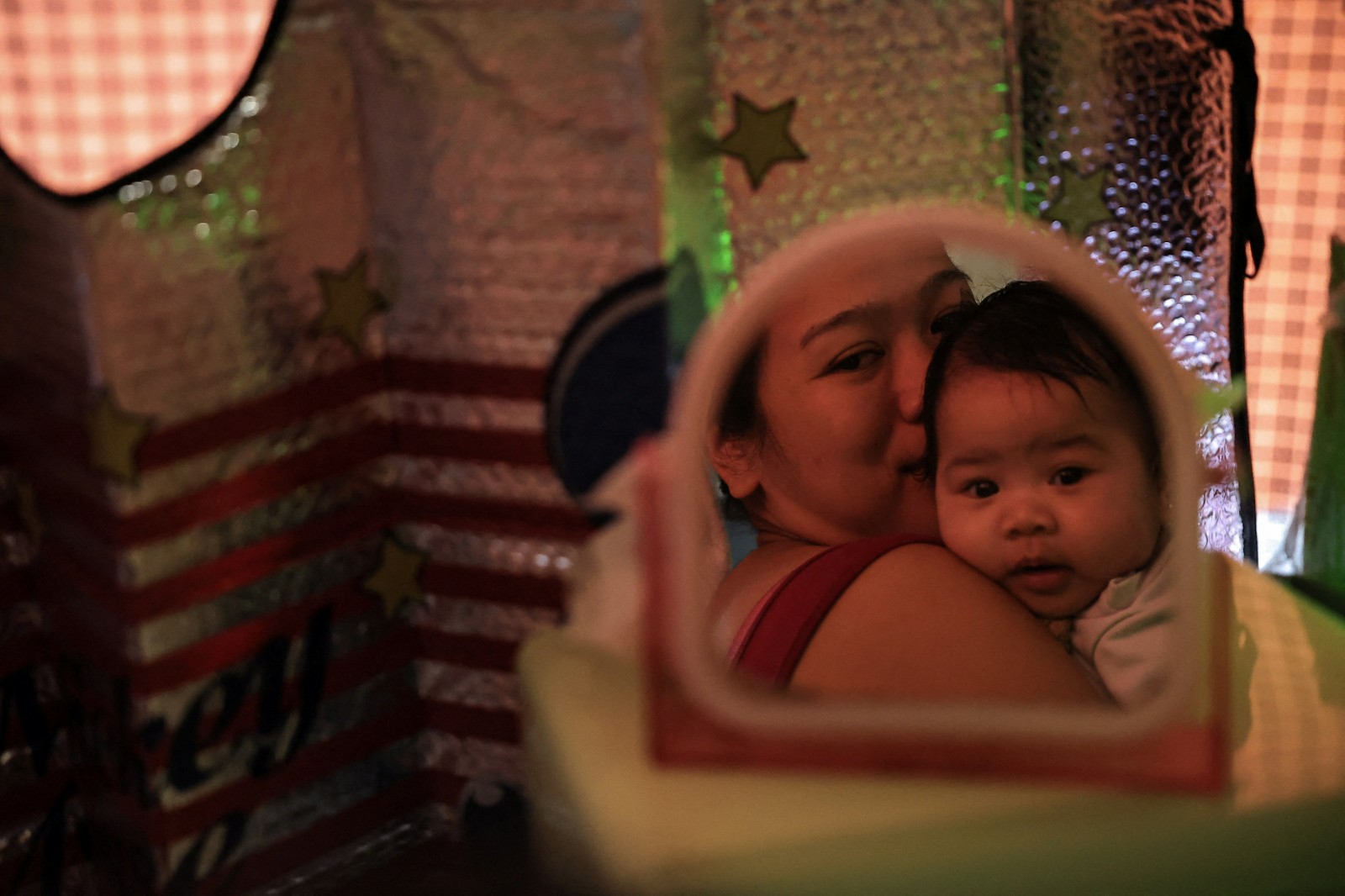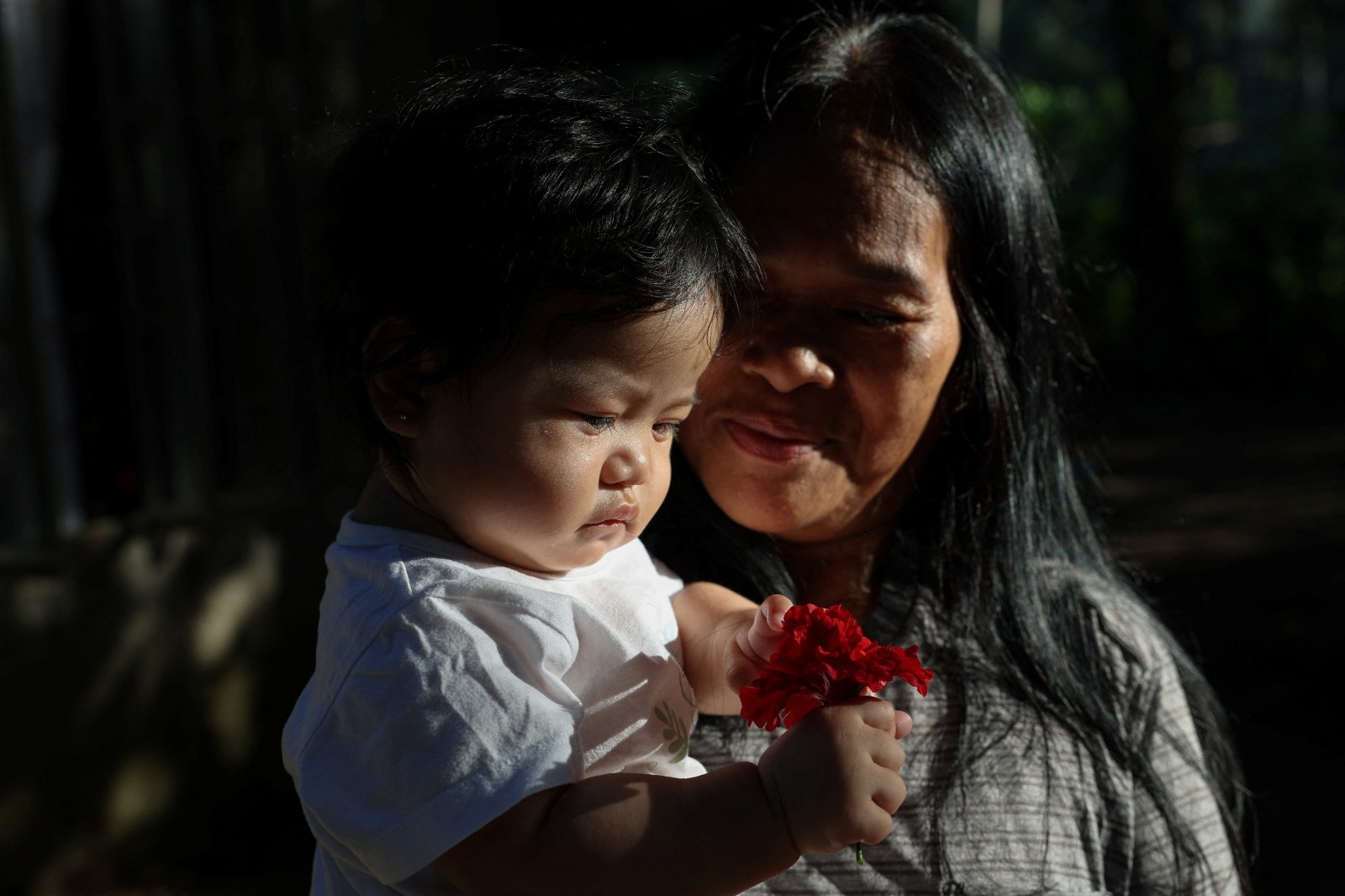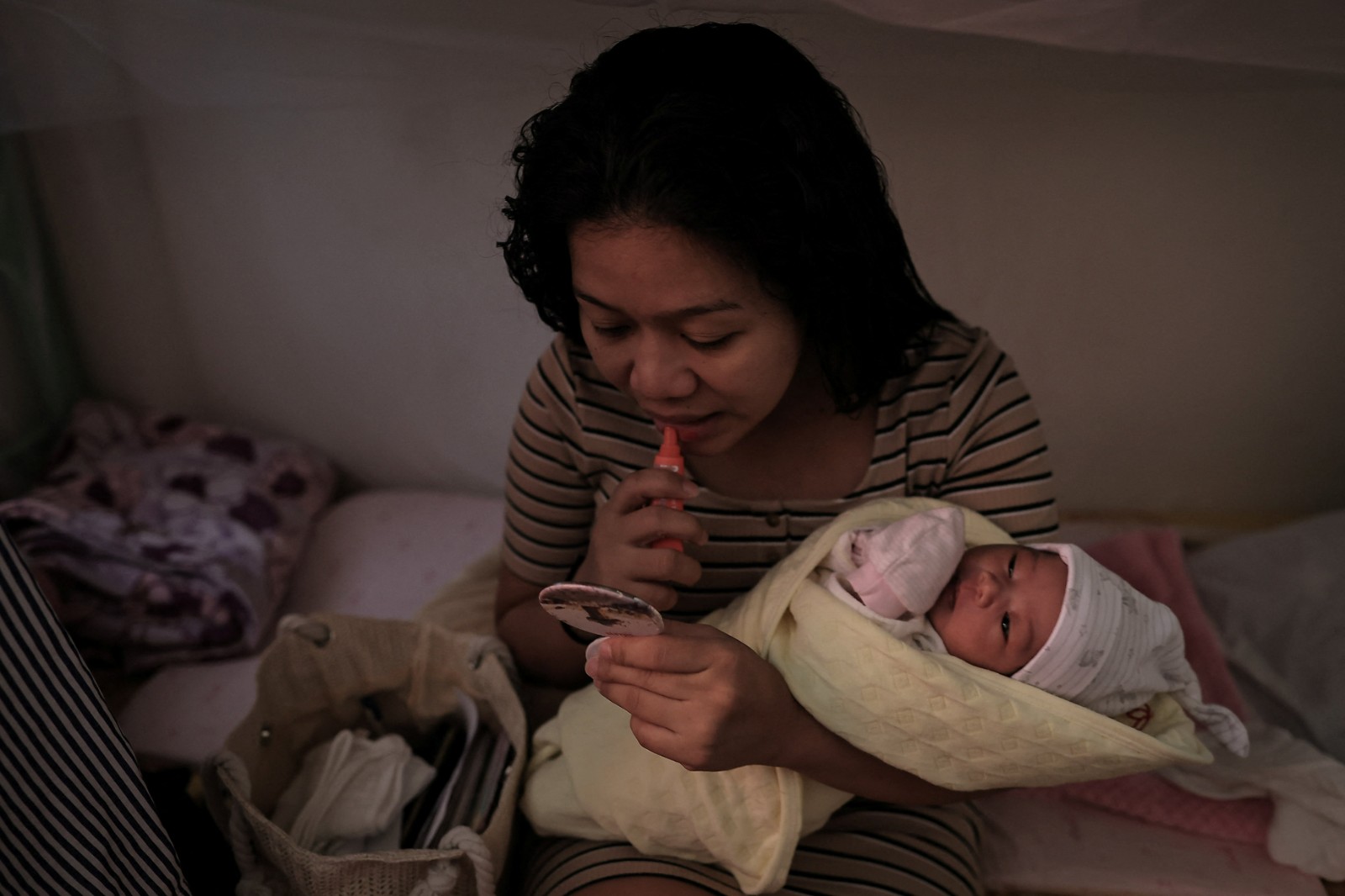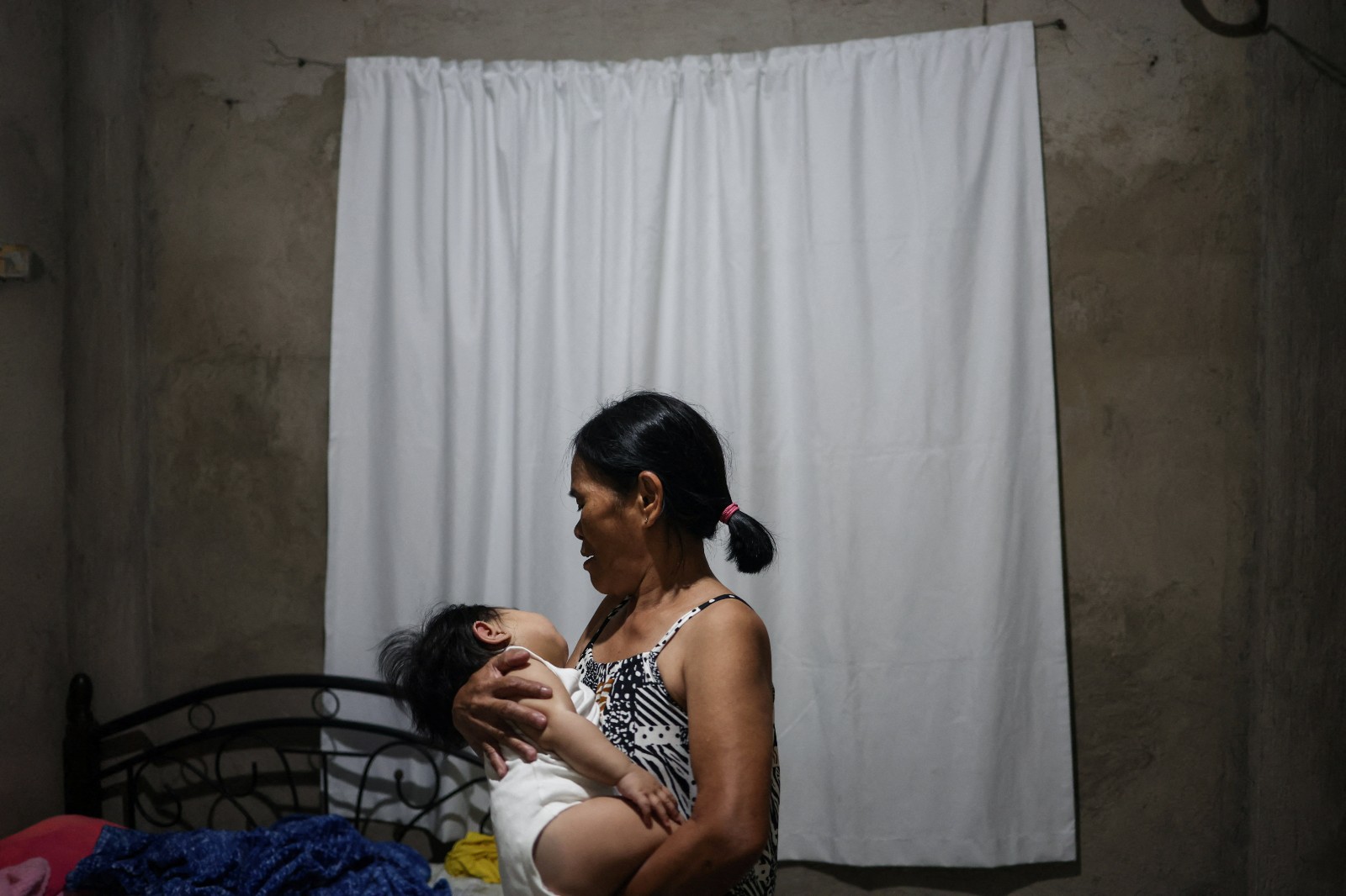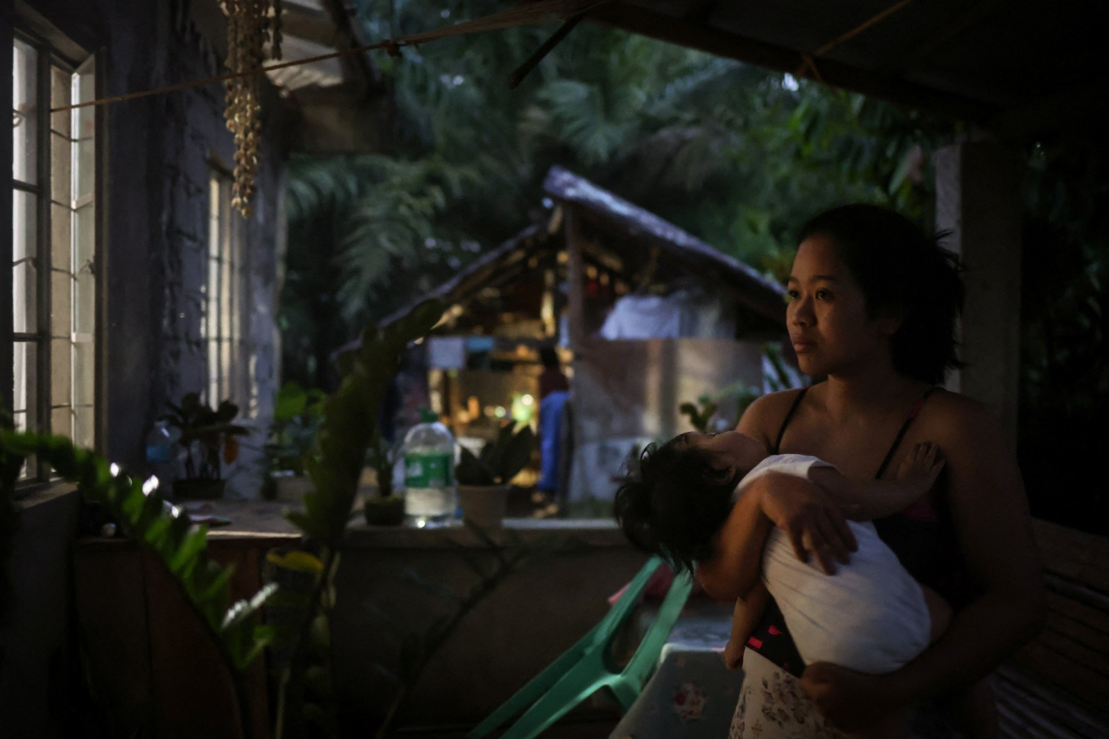 2025年3月15日,杜哈帕來台的前一晚,在呂宋島老家抱著7個月大的女兒。路透社