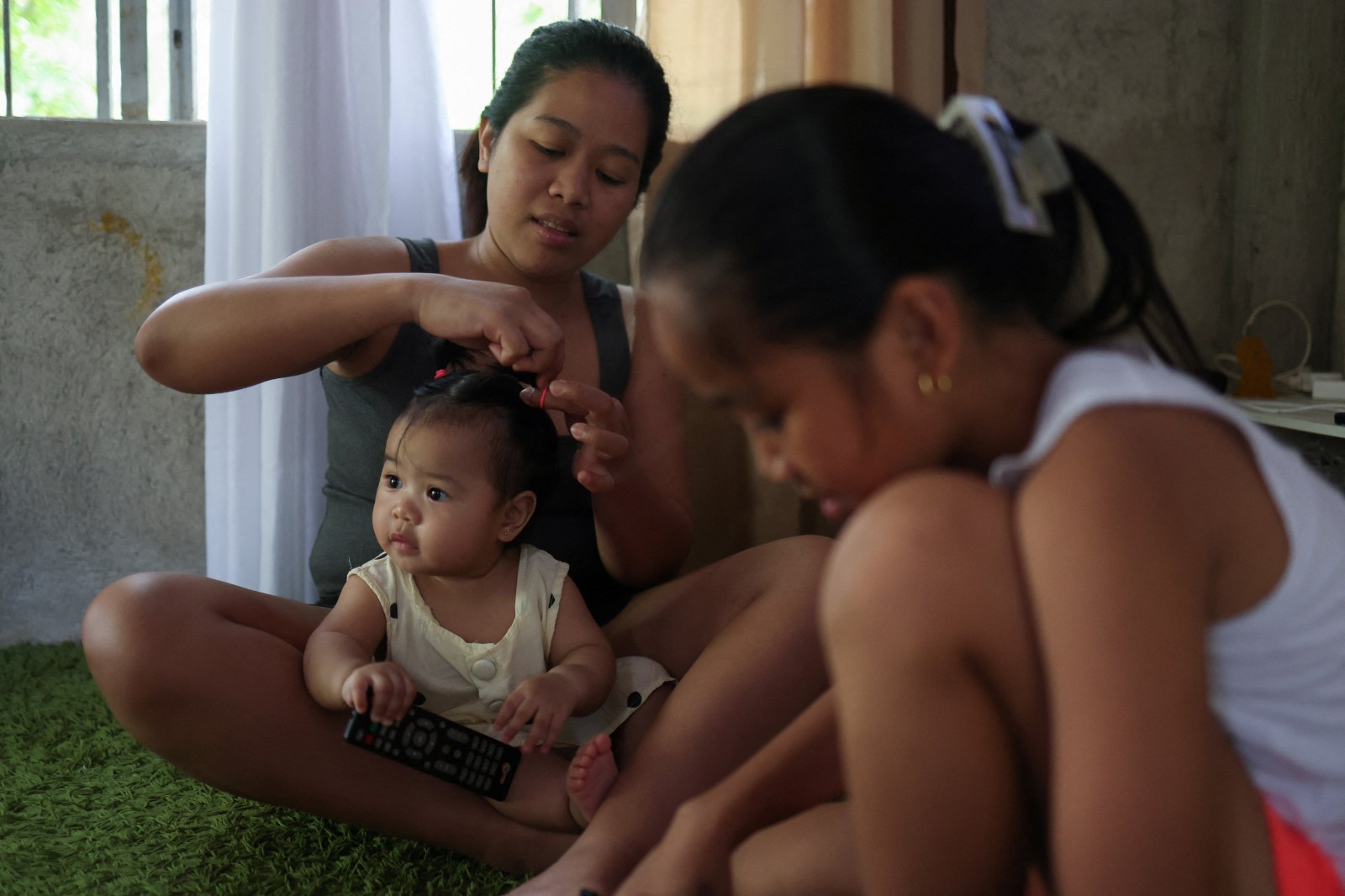 杜哈帕在位於呂宋島的家中,為7個月大的女兒綁頭髮。路透社