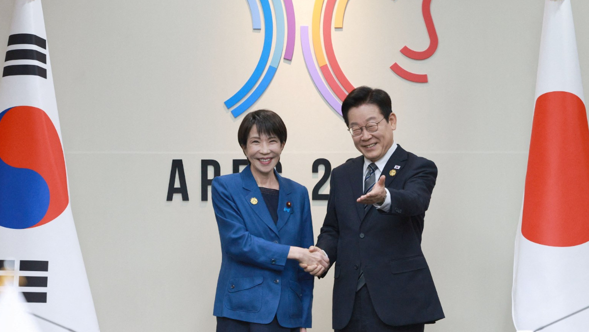 日本首相高市早苗(左)10月30日訪問南韓,與南韓總統李在明於慶州舉行雙邊會談。路透社