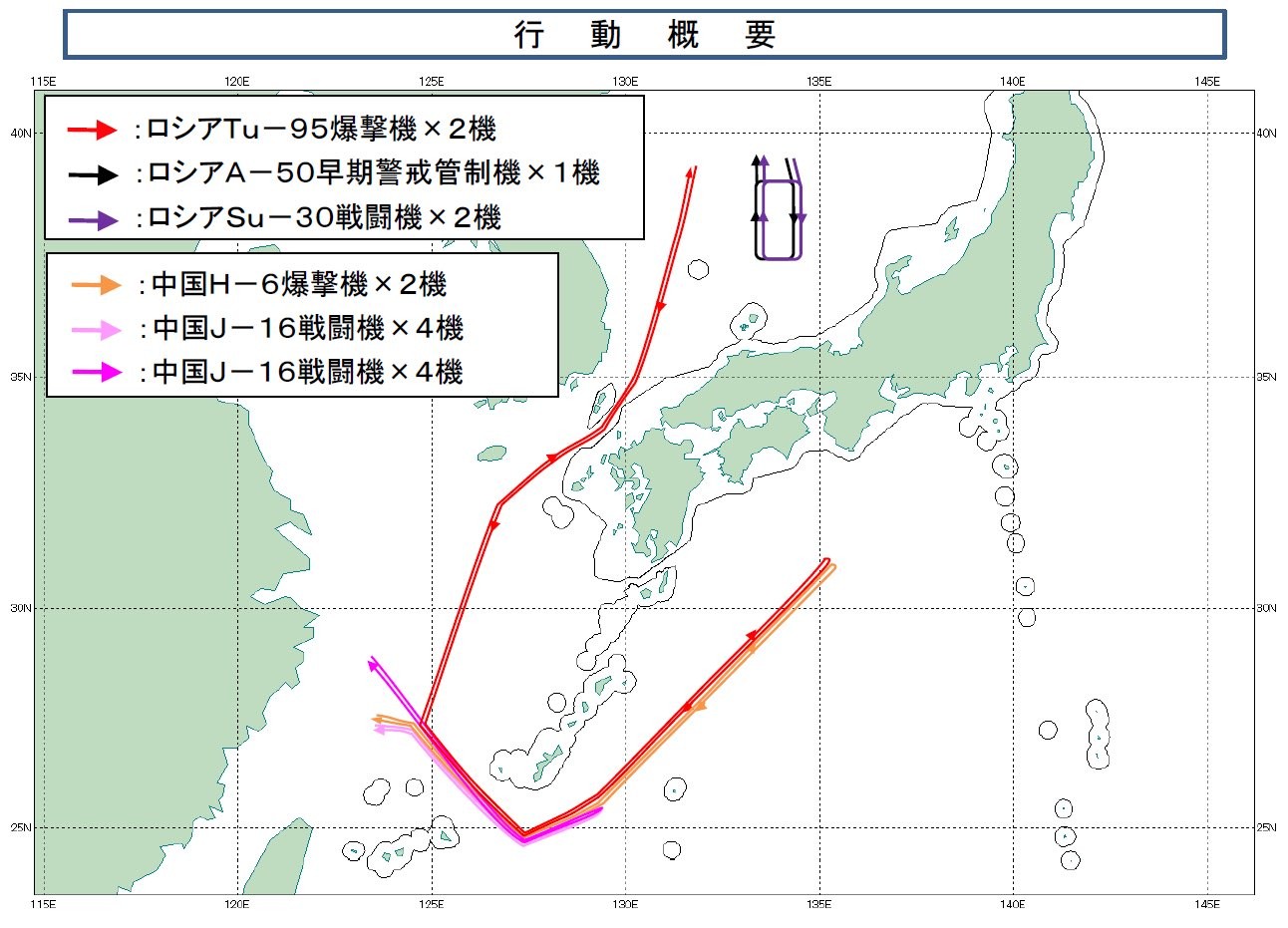 2025年12月9日,中國與俄羅斯15架軍機舉行第10次聯合空中戰略巡航,日本防衛省統合幕僚監部公布相關資訊,指兩國示威意圖明顯。翻攝自小泉進次郎X@shinjirokoiz