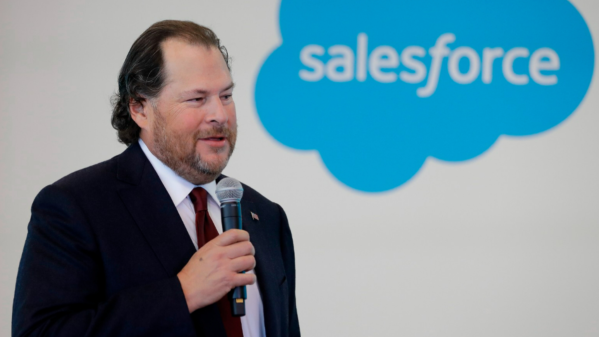 Salesforce執行長班紐夫日前在年會中一席「支持派國民兵至舊金山」言論惹議。圖為2019年5月16日在印第安納波利斯。美聯社
