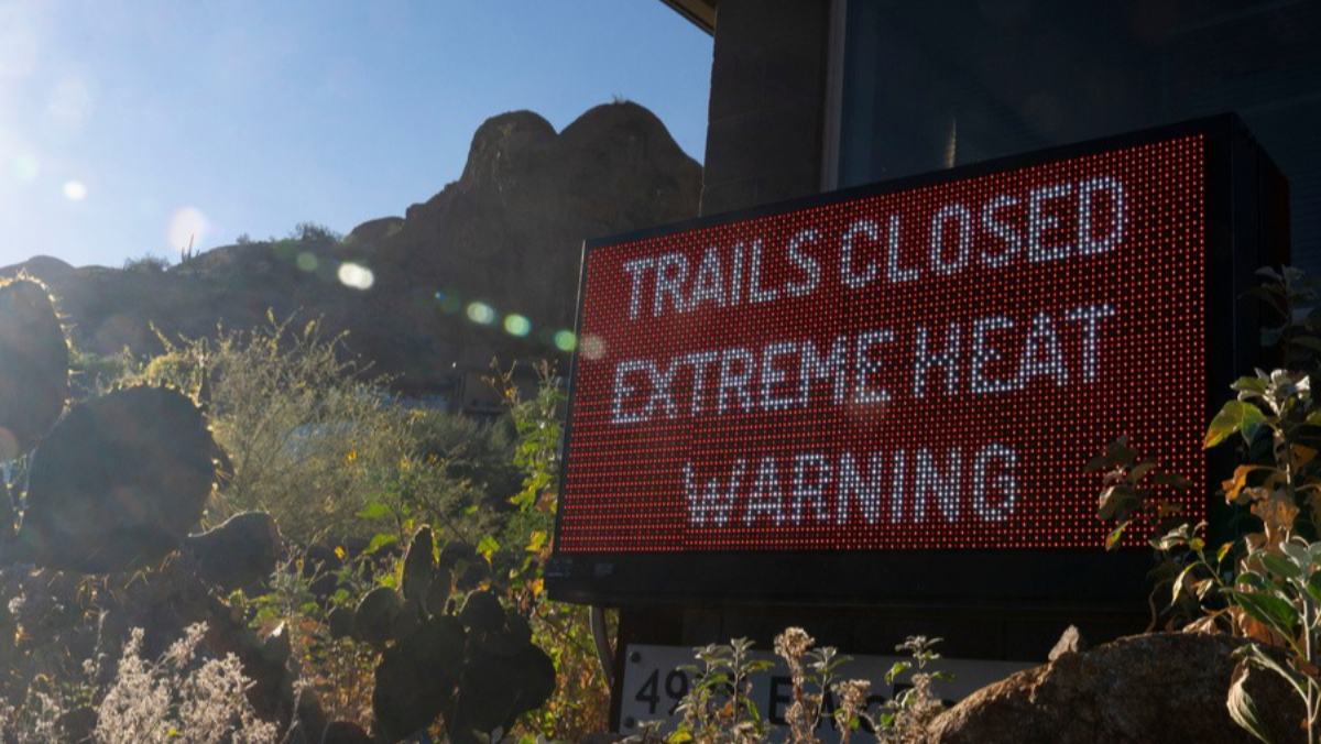 美國西南部三月遭遇熱浪,亞利桑那州鳳凰城的駱駝背山2026.3.19.因高溫關閉山徑。美聯社