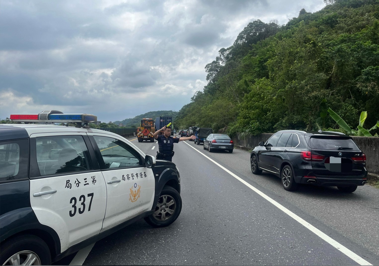 警方派員至現場進行交通疏導及安全警戒,事故現場並無人員傷亡,初步了解為疑與橋面伸縮縫角鋼隆起造成,詳細原因仍待進一步調查。基隆市警察局三分局呼籲,駕駛人若發現道路異常請立即通報警方或公路主管機關。