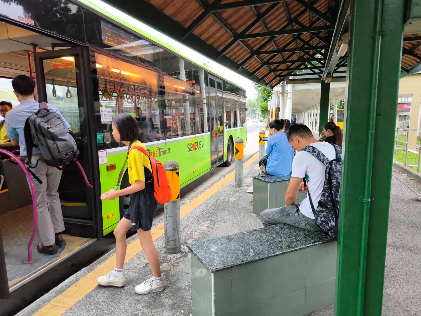新加坡9成公車站牌有候車亭,且座椅方向會正對車輛行駛方向。洪敏隆攝