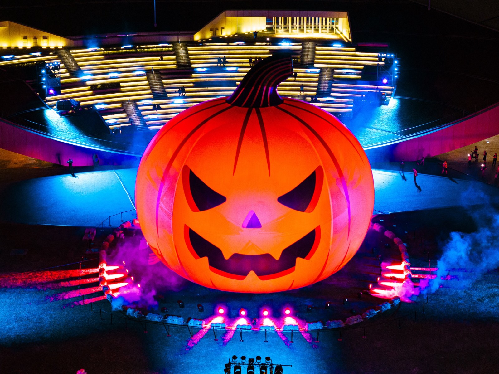 2025高雄萬聖節「喂!武營來搞怪」會場中的巨大南瓜。取自高雄市政府臉書