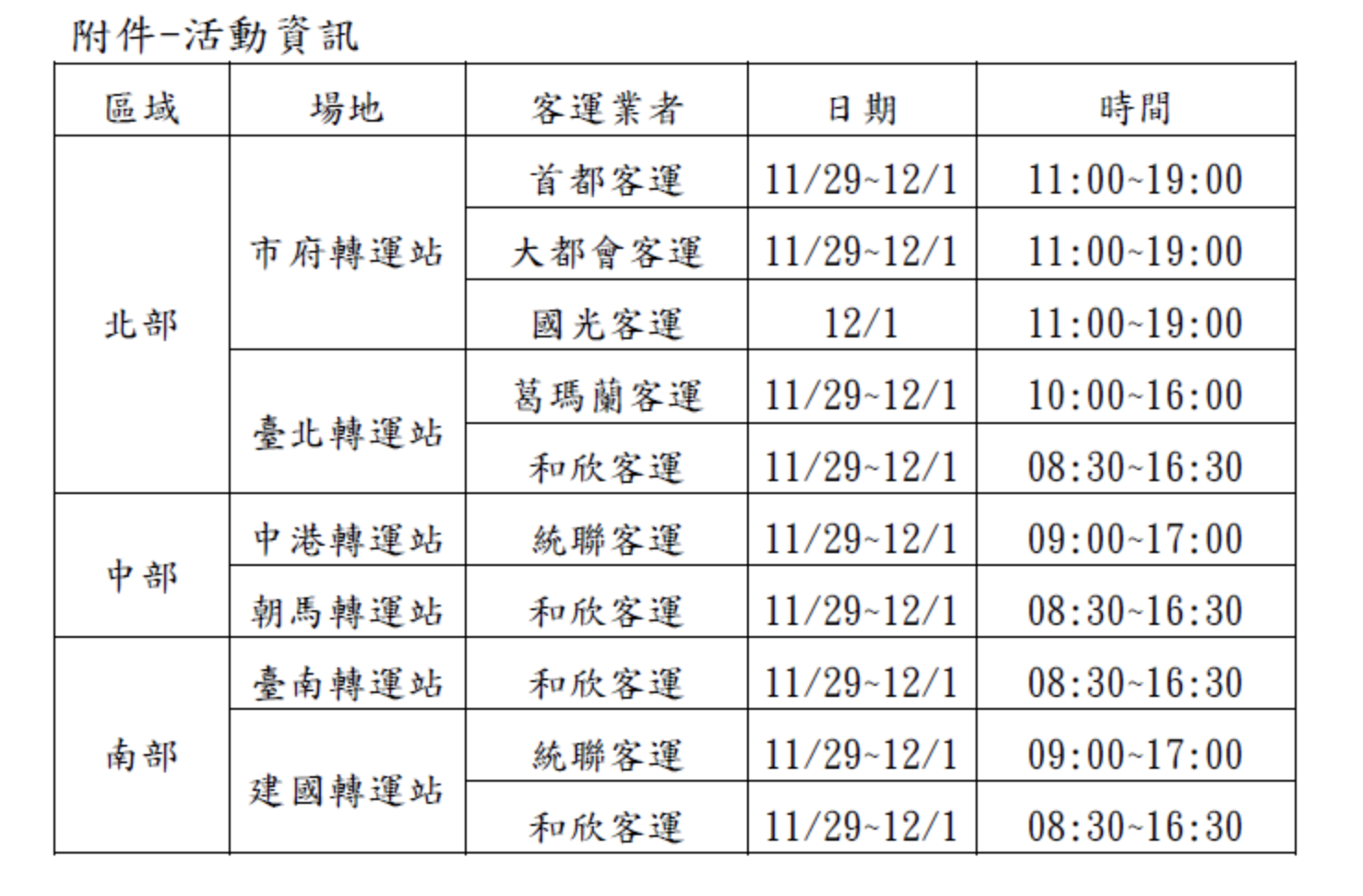 交通部表示,為鼓勵民眾加入TPASS 2.0+常客優惠,並搭乘中長途國道客運,公路局協調客運業者將自114年11月29日起於北中南各大轉運站辦理加碼登錄送活動,並於現場提供回饋說明及協助登錄,參加現場互動及完成登錄即可獲得精美小禮物,歡迎還沒有加入TPASS行列的民眾踴躍參加。