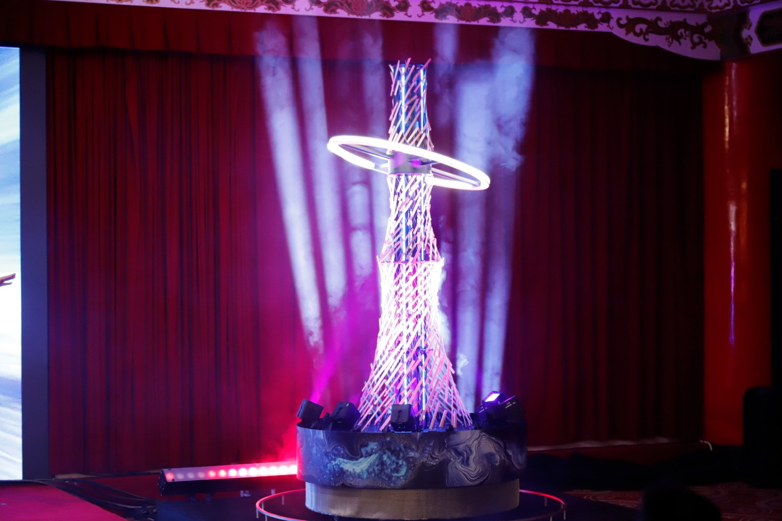 嘉縣長翁章梁表示,主燈以全球知名景點「阿里山」為設計發想,以阿里山神木為靈感延伸,主體高達21公尺,命名為「光沐-世界的阿里山」,由藝術家姚仲涵、盧彥臣與陳威志共同創作;主燈外觀以太陽、神木與水霧為核心意象,採用循環木料拼貼,展現永續精神。主燈將於3月3日元宵節晚間7點開燈,而後於晚間6點每半小時帶來一場精彩燈光秀。