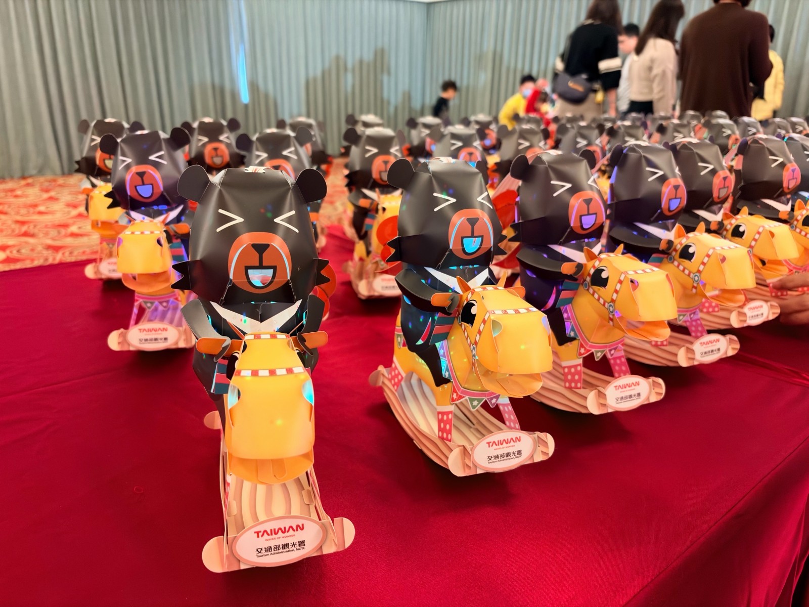 相較於主燈的壯麗,小提燈造型則具趣味及親和力,今年首度以2026年生肖「馬」和台灣觀光代言人「喔熊」結合,以喔熊騎木馬的造型展現童趣,命名「喔熊馬抵嘉」,融合嘉義縣名。