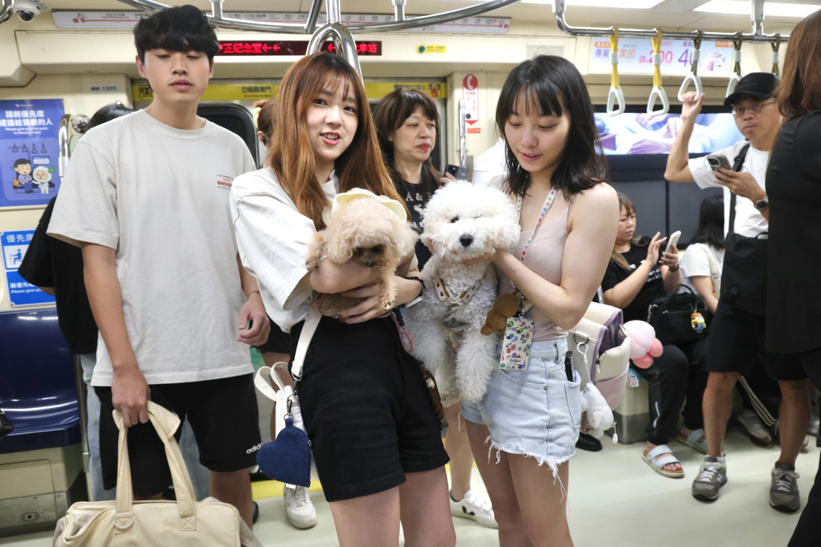 台北捷運今年第4年舉辦「狗狗友善列車」,4部列車的車門都車門貼有彩繪標示,車側及車頭顯示器加註「狗狗列車」字樣,下午1時起行駛淡水信義線象山站到淡水站,開放寵物上車免關籠,須全程佩戴胸背帶及牽引繩。
