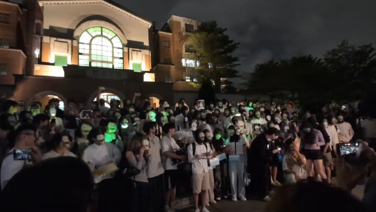 有網友在Threads貼出現場畫面,只見眾多學生戴上「盧媽媽」面具,一邊敲鼓、一邊沿途發糖,有人更刻意打上綠光,重現盧秀燕在爵士音樂節的詭異打鼓畫面,還一邊喊著「盧媽媽加油」、「台中購物節開跑囉!」、「盧秀燕還我豬」,立即在網路上引發熱議。