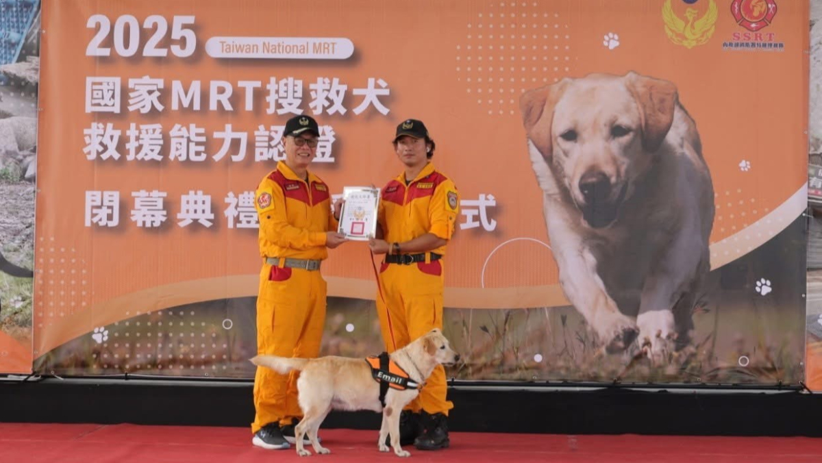 每當天災發生,「搜救犬」往往都是救災行動中最重要的幫手之一。內政部今(29)日表示,「2025年國家MRT搜救犬救援能力認證活動」在昨(28)日在消防署訓練中心圓滿閉幕,這次的認證活動也吸引臺灣及日本共20組搜救犬隊伍參加認證,最終共有16組通過國際標準。