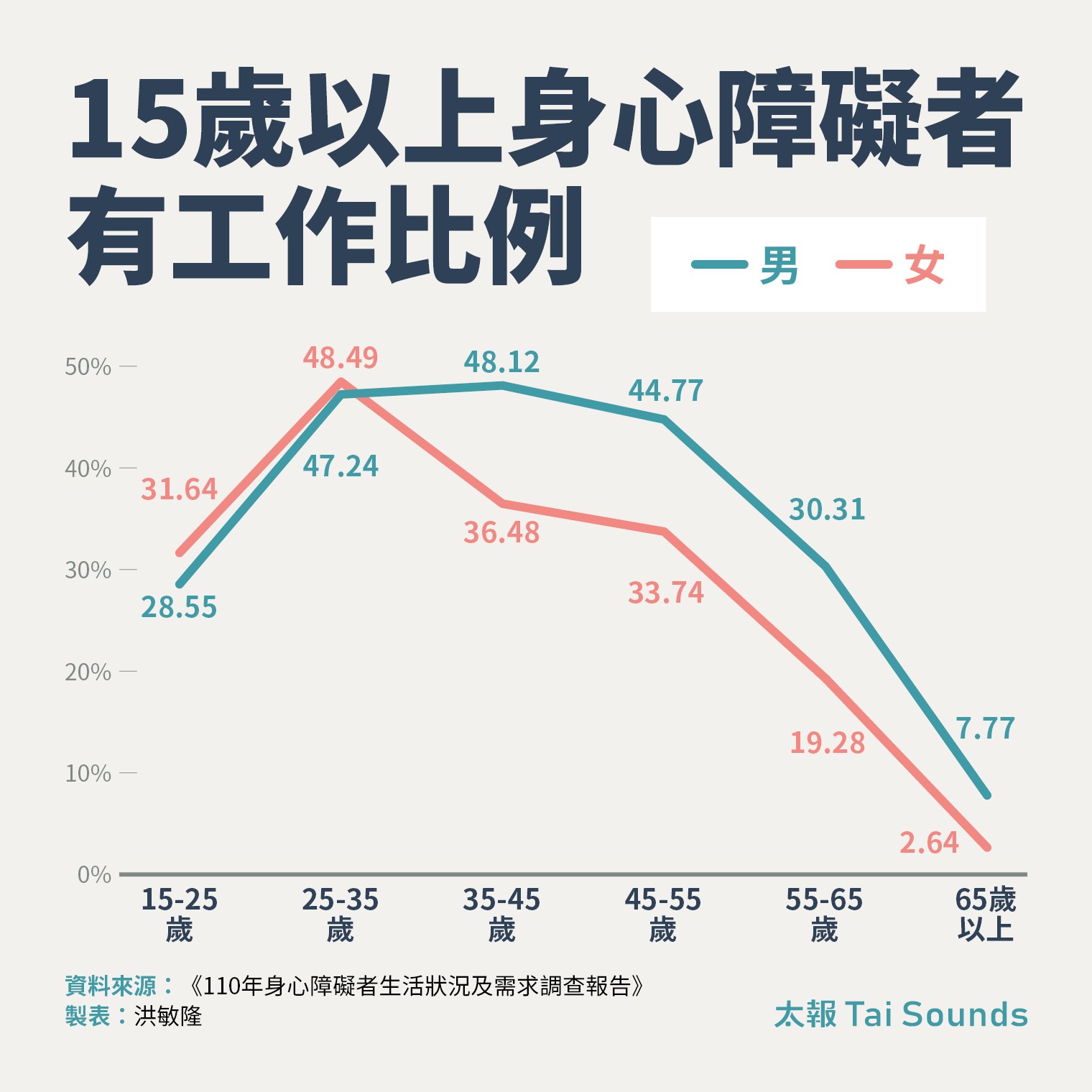 身障者有工作的比例也明顯偏低