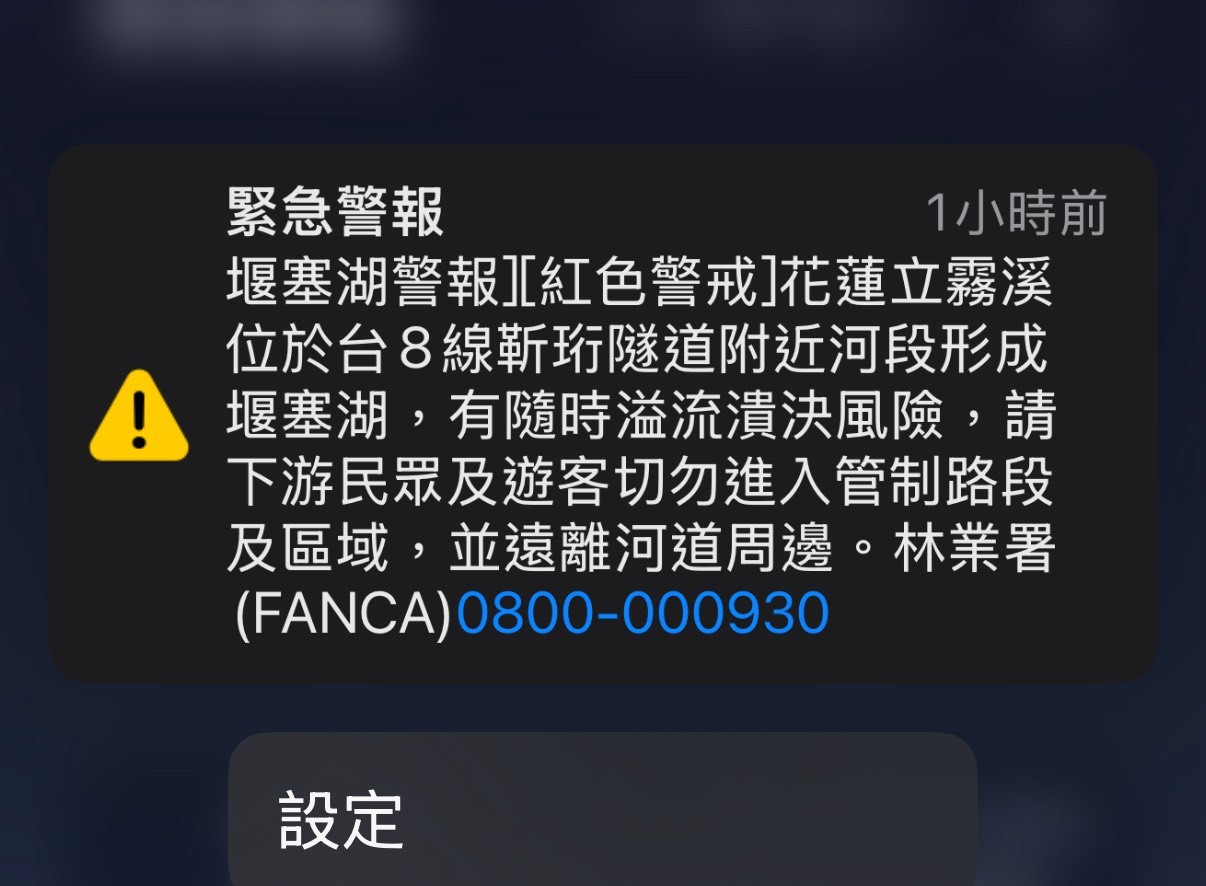 另外,一名搭乘火車前往花蓮工作的讀者表示,新堰塞湖消息發布後,每個人都收到細胞簡訊,「全車手機都在響」,可見政府對事件的重視。