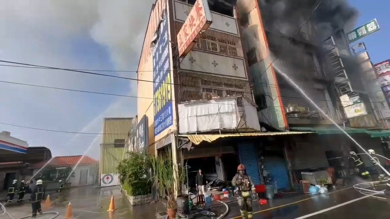 屏東縣屏東市民生路旁店家2日發生火災,現場不斷傳出爆炸聲響,猛烈的火勢迅速波及左鄰右舍,延燒到了隔壁的藥局,危急的是火場旁邊就是加油站,屏東縣消防局增派支援,全力灌救。