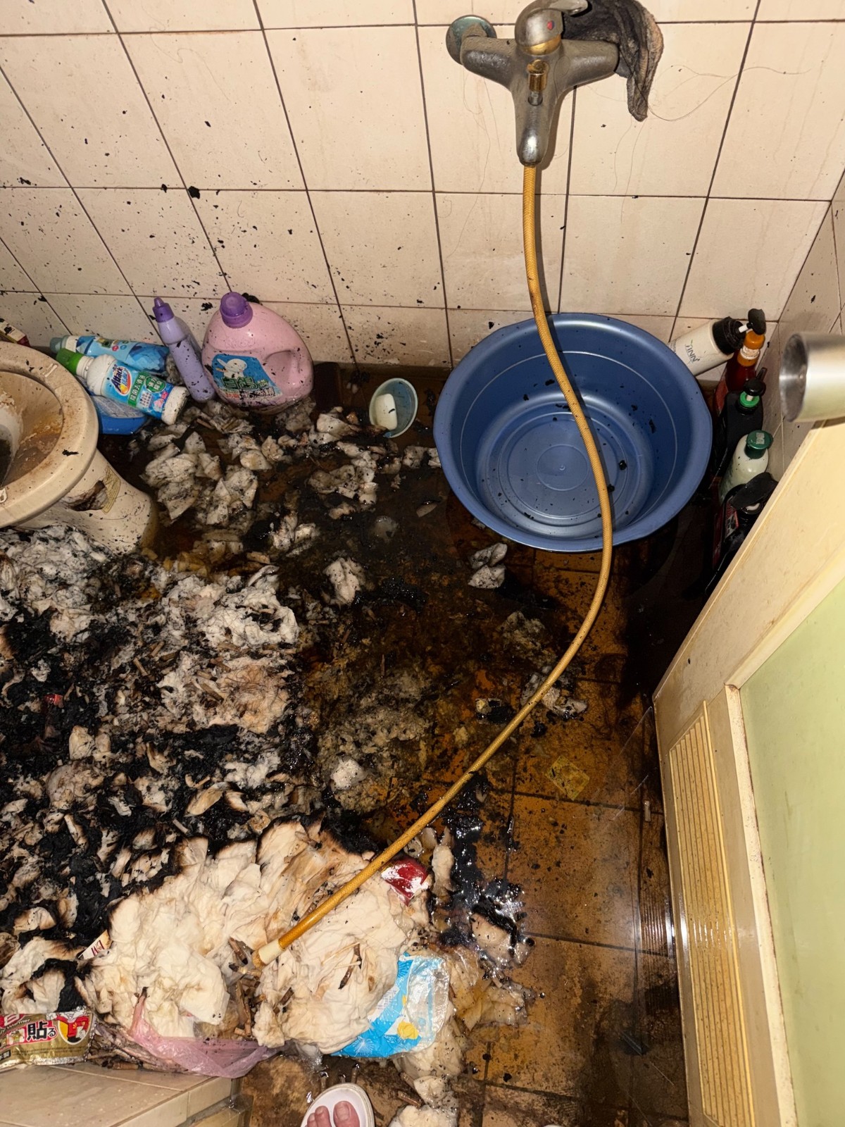 2025年10月31日,台中市西屯區發生套房火災,屋內滿滿垃圾山。取自福和里長林寅利臉書