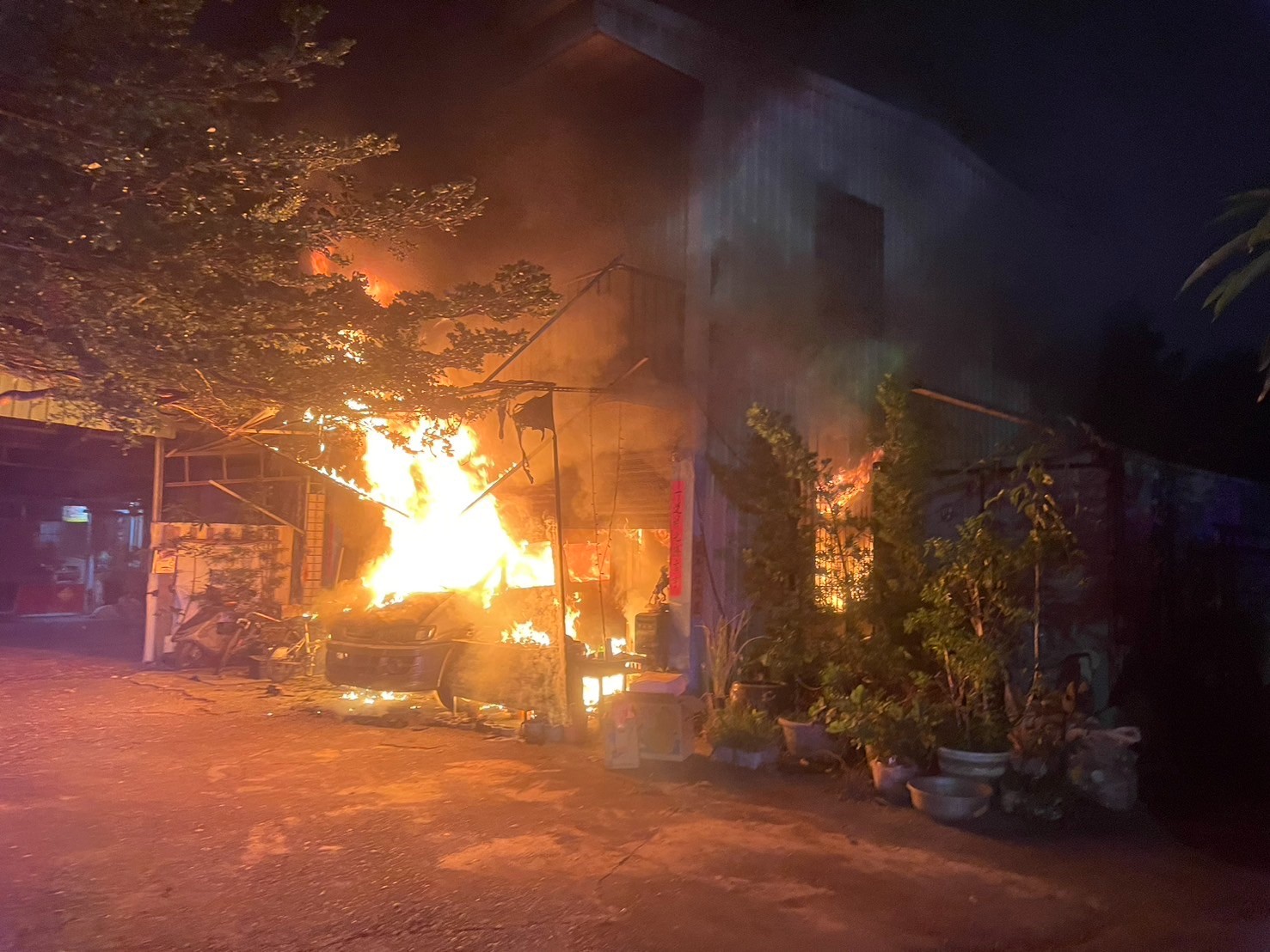 火災發生在凌晨2時15分,地點位在台中市烏日區五光路旁一處鐵皮屋,台中市消防局派遣人車到場,熊熊烈火不斷竄出,母女受困在二樓。