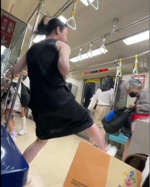 今年9月底,曾婦手上拎著大包小包,搭乘北捷淡水信義線時,不滿一名年輕人坐在優先席上不讓座,便持手上包包揮打對方。只見這名年輕人淡定轉頭,禮貌詢問隔壁乘客「可以幫我拿一下嗎」,把手中「三宅一生」提袋交給旁人後,隨即起身一個大腳踹向曾婦,曾婦連人帶包飛到對面座位上,在場乘客全看傻眼。