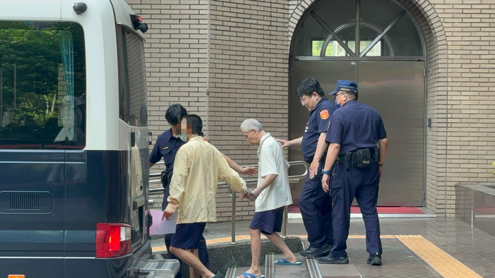 萬華老翁陳進財(中,白髮者)涉嫌狂砍顏姓室友297刀致死,他之前出庭強調沒有要對方死。資料照。侯柏青攝