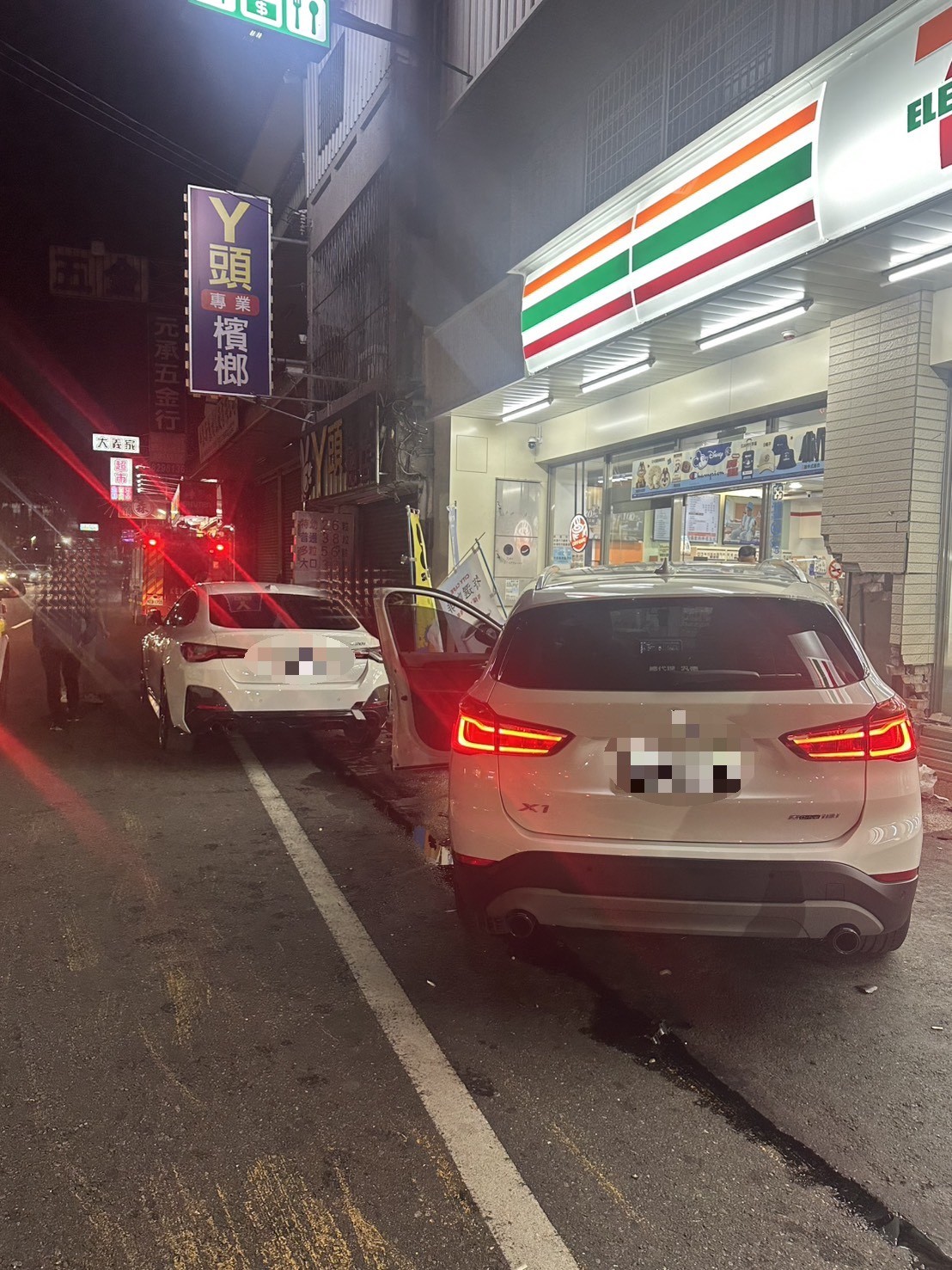 2025年11日20日晚間,彰化縣埔心鄉發生豪車尬車競速,撞進超商。讀者提供