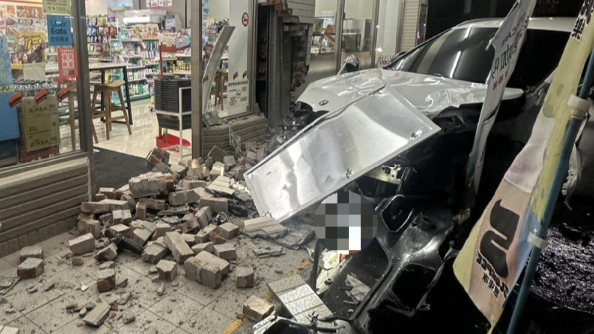 這起交通事故發生在20日晚間21時6分,地點位在彰化縣埔心鄉員鹿路一段與瑤鳳路口。畫面顯示,豪車一路飆,完全沒有煞車跡象,往路旁超商撞擊,當時,1名路人站在超商外,看見車直直撞過來,轉身想跑,卻來不及,整個人被撞成重傷送醫,