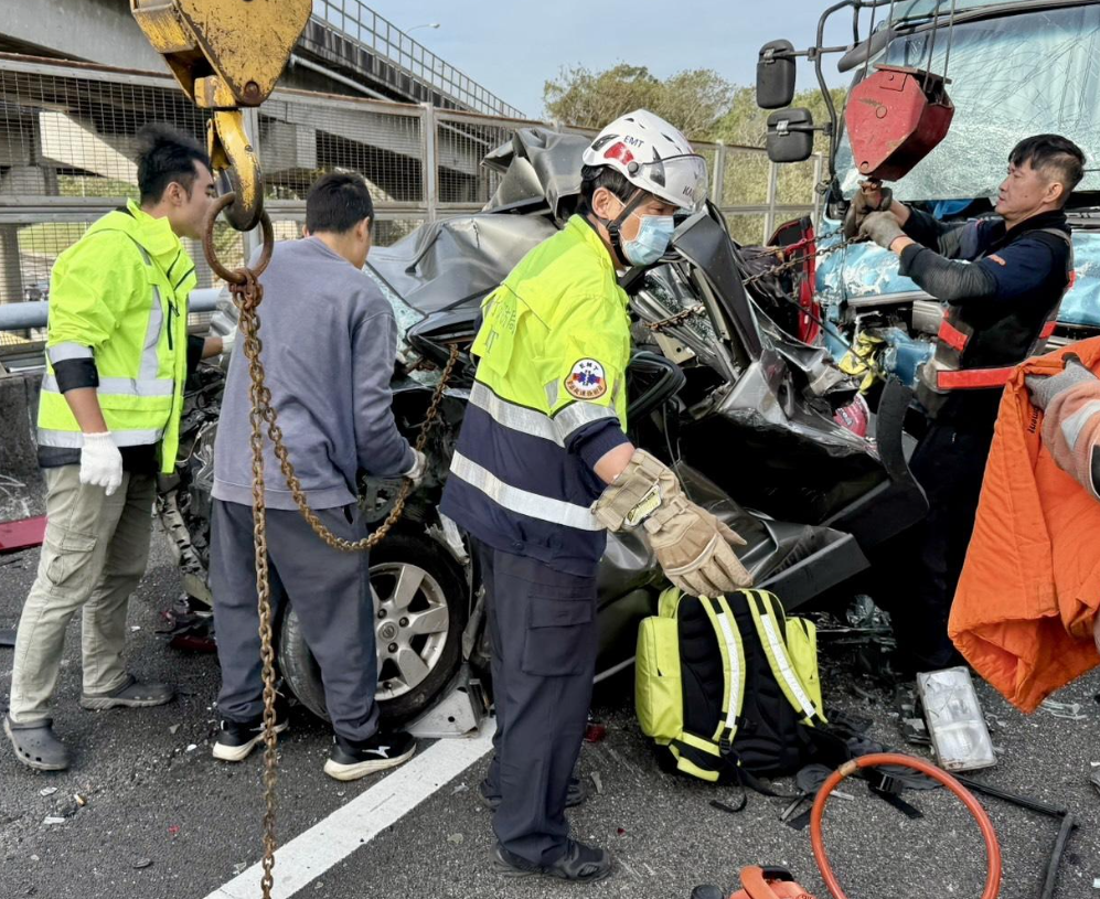 消防員立刻破壞車體,將受困駕駛救出,連同其他5名傷者都緊急送醫,6人都是男性、身上都受到擦挫傷及部分撕裂傷,車禍發生的確切原因正由國道警方調查釐清。