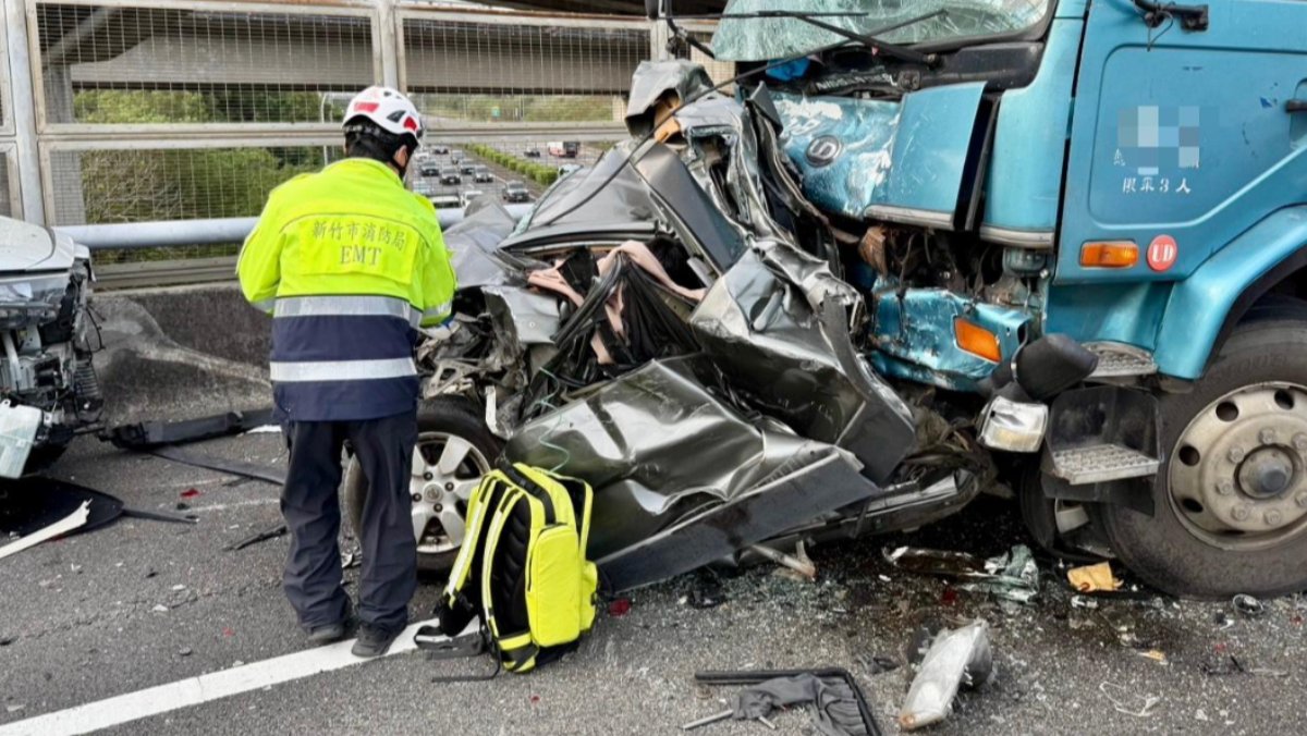 新竹縣消防局表示,事發地點在新竹交流道北上100.6公里處,上午8時18分左右發生車禍,上午消防獲報後,共出動5車11人趕往救援,抵達後發現狀況相當嚴重,一共6輛自小客與1輛貨車事故,其中一名自小客車駕駛受困。