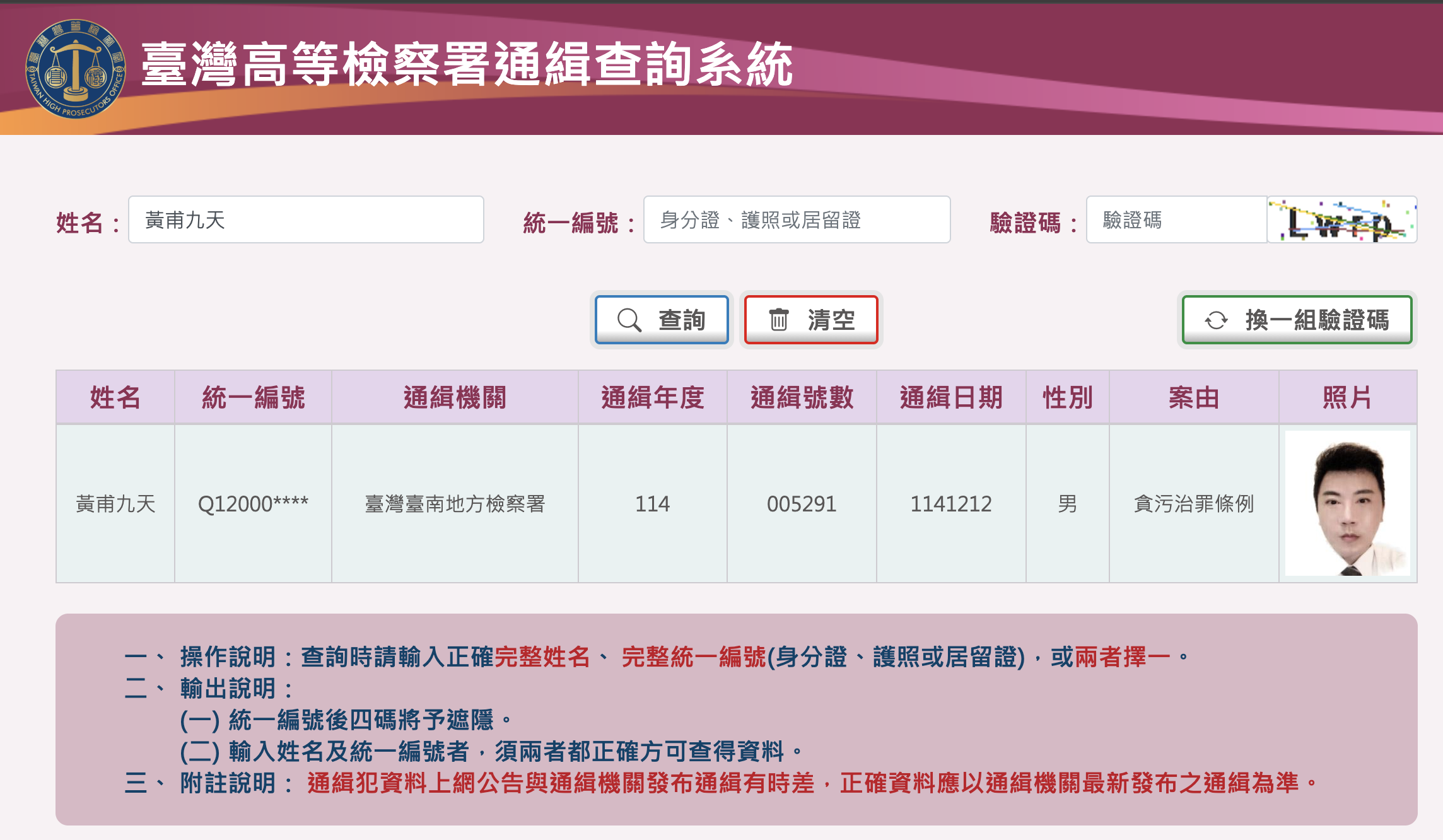 經最高院駁回上訴確定,不過黃甫九天在更一審後失聯。南檢指出,要合併處罰時,黃男未到案且拘提未獲,由於處罰可能在易科罰金的部分會有變動,因此還未依程序向法院聲請裁定合併應執行刑,檢方去年12月12日對其發布通緝,繳交的保證金200萬元也被沒收。