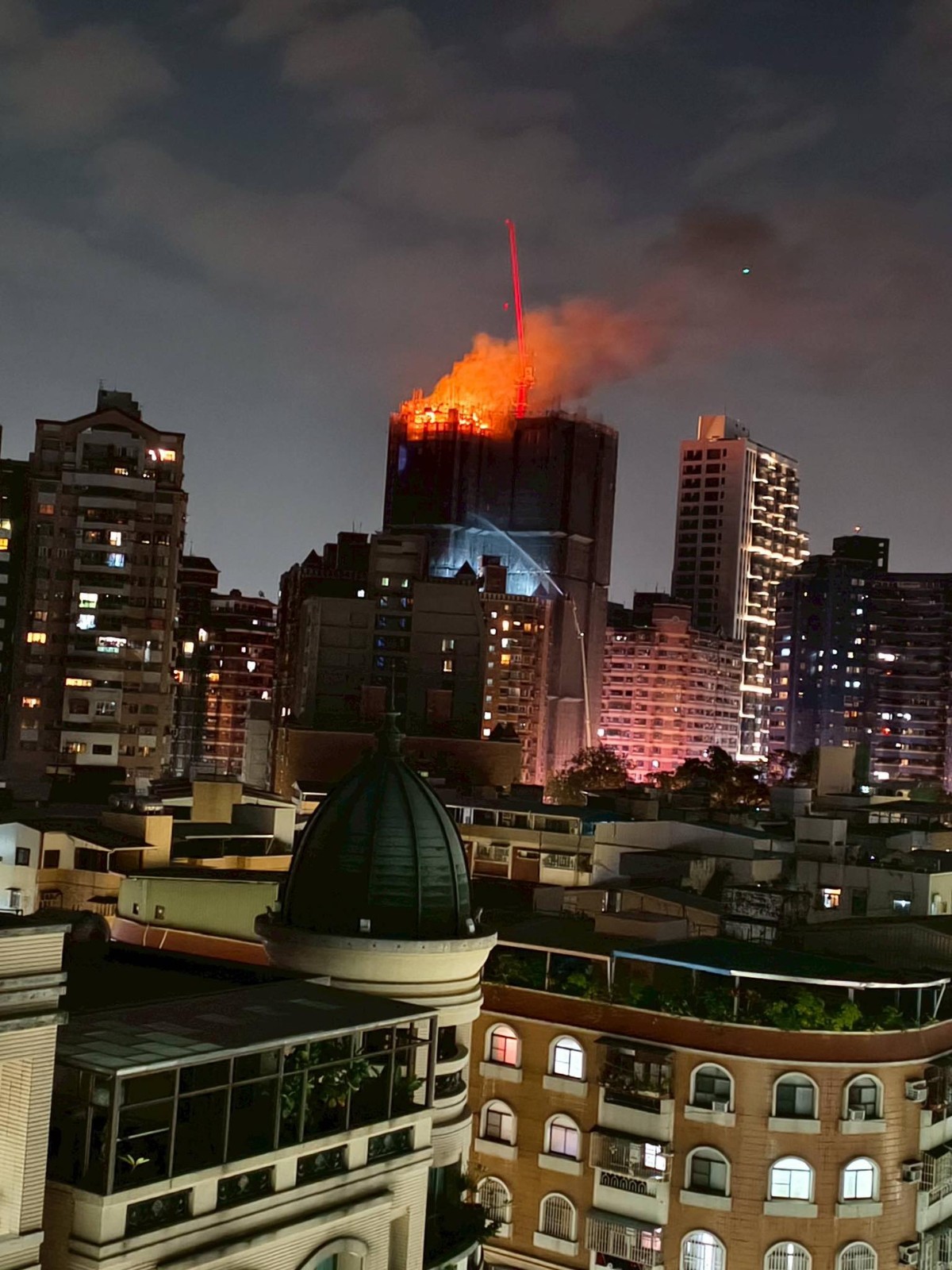 高雄市鼓山區華榮路一棟興建中的30層樓豪宅大樓,23日凌晨0時11分火災,高雄市消防局出動29車81人搶救,所幸無人員受傷受困,火災原因待調查。不過,26樓高處冒出烈焰,燒成一炷香,消防員徒步一層一層爬佈線,十分辛苦;而隔壁住戶聽聞「失火」,想起香港宏福苑惡火,暗夜驚醒急忙逃生。