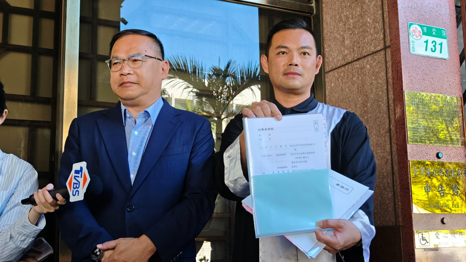 青年監督聯盟發起人陳又新律師(圖右)以及執行長許譽騰(圖左),10月1日下午前往北檢按鈴告發凱思國際李姓負責人涉犯國安法,前中央社謝姓記者涉犯妨害秘密等罪。資料照。呂志明攝