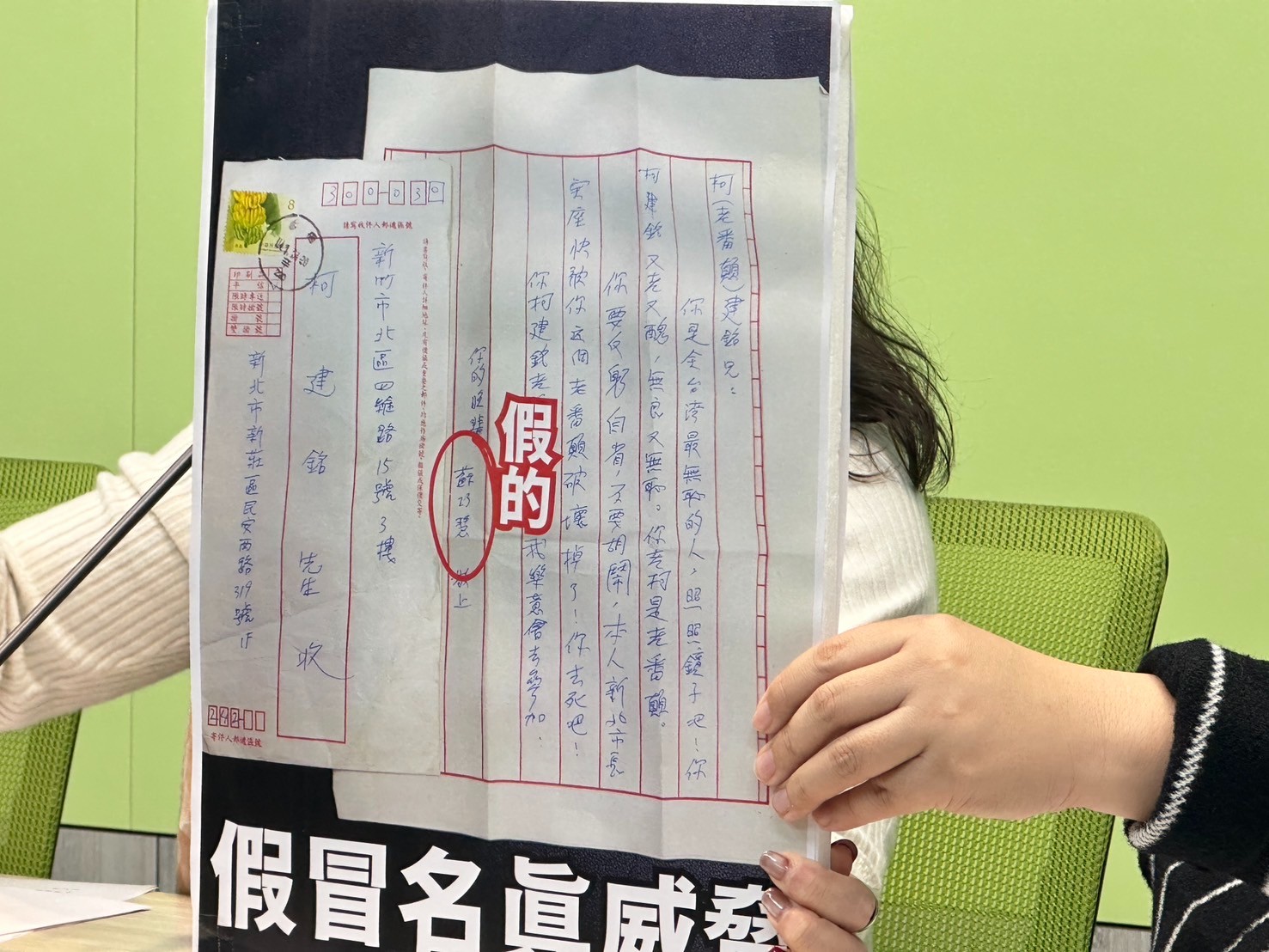 吳思瑤當時還秀出一封手寫恐嚇信,這封親筆寫的信函寄到柯建銘的新竹服務處,署名是「蘇巧慧」,她說,就算真的跟立委蘇巧慧同名同姓,這也是「假冒名真威脅」。刑事局獲報後報請台北地檢署指揮偵辦,柯建銘的助理也代為提告。