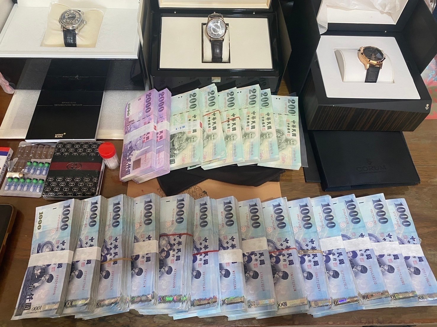 檢調在雲林縣議長黃凱家中查扣232萬現金及名表。資料照。最高檢察署提供