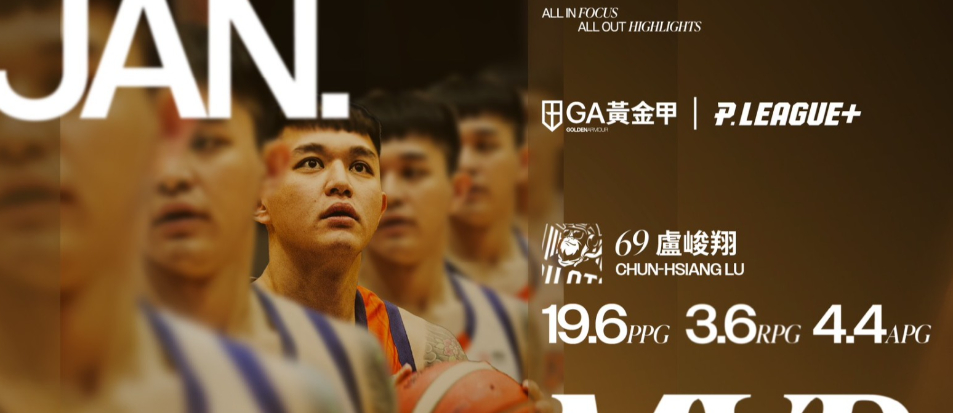 台灣職籃PLG今(11日)公佈2025-26球季1月最有價值球員,桃園璞園領航猿的盧峻翔再次表現優異,繳出單月場均19.6分4.4助攻3.6籃板的成績單,幫助領航猿01月7戰6勝持續穩居聯盟第一,盧峻翔也因此生涯第9次獲選單月最有價值球員,同時也是生涯首次單月最有價值球員3連霸。