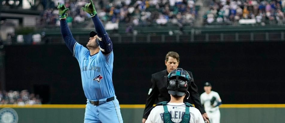 MLB(Major League Baseball,美國職業棒球大聯盟)美聯冠軍賽第3戰,藍鳥作客水手,全場繳出18支安打,包括追平隊史的5轟,藍鳥13-4搶回1勝,系列賽水手2勝1負領先。