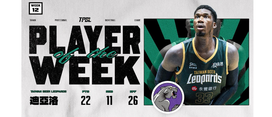 桃園台啤永豐雲豹上週南下踢館高雄全家海神,面對急需止敗的關鍵戰役,雲豹外援迪亞洛(Cheick Diallo)自替補出發,在攻守兩端展現高度侵略性與效率,最終幫助球隊成功終止三連敗,也憑藉亮眼表現獲選為 TPBL 第十二週單週最有價值球員(MVP)。
