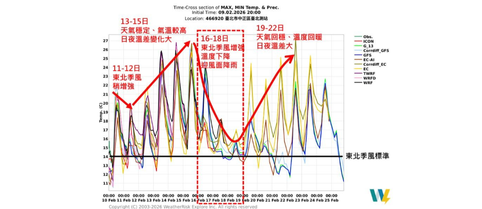 受強烈大陸冷氣團影響,全台今(9日)清晨溫度仍偏低,中央氣象署稍早針對21縣市發布低溫特報,另白天起寒流減弱,入夜到明天清晨仍有機率跌破10度,溫差大非常有感。本週六起春節9天連假,週五至小年夜大致上各地晴朗溫暖舒適,除夕(2/16)大台北與東北部會轉濕冷。