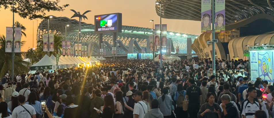 南韓女團TWICE上週末(22、23 日)在高雄世運主場館開唱,吸引大批粉絲湧入,同時間也有伍佰&China Blue及多場演出活動,包括高流、衛武營與駁二等地皆人潮踴躍,2日共吸引逾18萬人次造訪,高雄捷運22日單日運量達35萬人次創今年新高,各大商圈與夜市也明顯受惠,市府預估帶動逾5億元觀光產值。