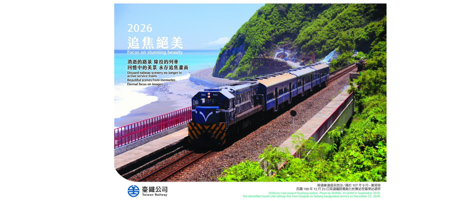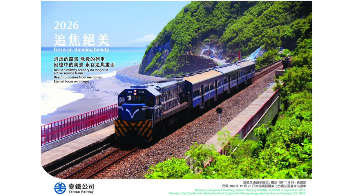 鐵道迷每年關注甚至收藏的台鐵桌月曆出爐,交通部台鐵公司表示,2026年台鐵公司桌月曆以「重現台鐵無可取代的故事」為主軸,透過影像喚起民眾記憶中「那一年我們一起追的火車」,帶領舊雨新知重新認識台鐵的軌跡與情感。